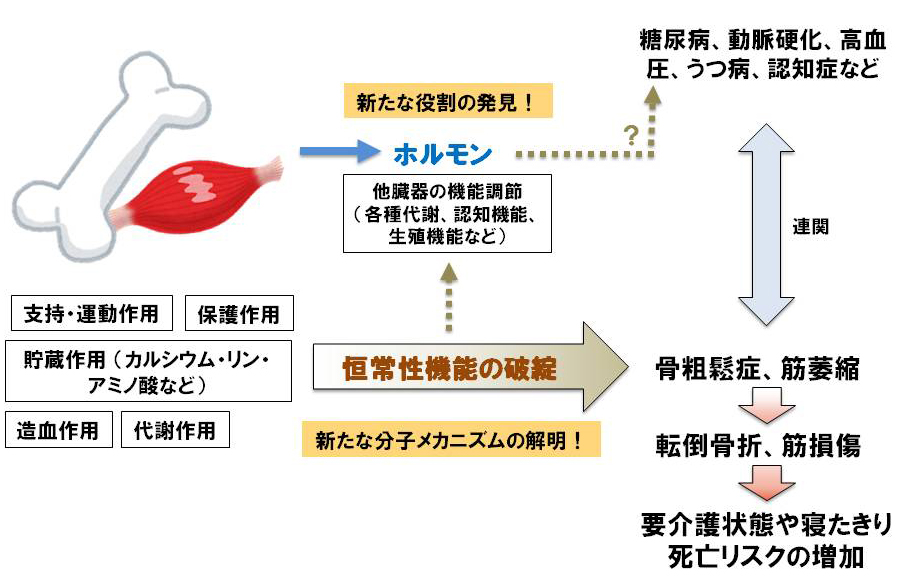 運動器(骨と骨格筋)は、身体活動を支える機能のみならず、ミネラル・代謝産物・ホルモンを介した他臓器の機能調節などを持つマルチタスクな臓器です。