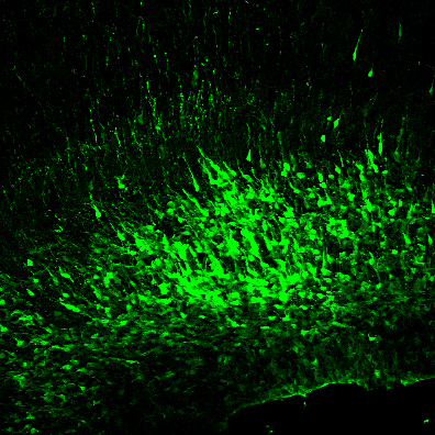 発生時の特定の時期に炎症がおこることで、成体において自閉症のリスクが増大したり、不安様行動を呈しやすくなったり、てんかん発作の閾値が変動することが報告されています。我々は、海馬のシナプス形成期のマウスにおいて、細菌由来の毒素であるLPSが神経炎症を誘発する機序の解析を行っています。我々の解析では、LPSの投与によってアストロサイトが応答し神経細胞のシナプス形成等に影響しますが、アストロサイトの応答にグリコーゲン代謝が活性していることを見出しました。中枢神経での神経炎症応答に、特定のエネルギー代謝系の活性化が関与していることを示しました。